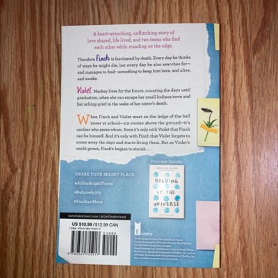 When Finch and Violet meet on the ledge of the bell tower at school--six stories above the ground-- it's unclear who saves whom. Soon it's only with Violet that Finch can be himself. And it's only with Finch that Violet can forget to count away the days and start living them. But as Violet's world grows, Finch's begins to shrink. . . .