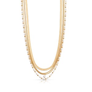 Four elegant chains in one! Each layer is meticulously crafted to drape gracefully around your neckline, creating a powerful statement piece that complements any outfit. Why blend in when you're born to stand out? Make your fashion statement with our All the Chains 18K Gold Plated Layered Necklace.