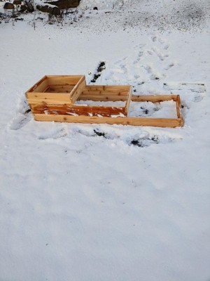 [This review was collected as part of a promotion.] From the moment I opened the box you could smell the wonderful scent of cedar. Well that is if you like the smell of cedar. Total time to put this together was less than thirty minutes and that is probably over the amount of time it actually took. You do have to drill holes for the screws, but that's okay. It is very sturdy. As you can tell from the pictures winter hit before we could get it filled with dirt. This bed will be my onion bed come spring. I love that it has three tiers, so we can plant three different types of onions or even three different vegetables all together.