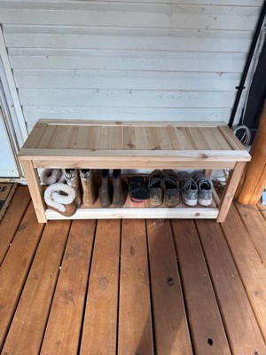[This review was collected as part of a promotion.] #compliementary i absolutely love this bench! ended up using it as a tv stand & in the near future i will be adding some drawers in the bottom! It was some what easy to build, just wished the piece where labeled so it would make things way more easier! overall such a a cute addition to my household!