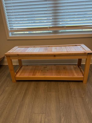 All Things Cedar 44 Inch Deluxe Cedar Wooden Sauna Bench, Indoor Outdoor Seating with Lower Storage Shelf for Patio or Bathroom Shower, Natural