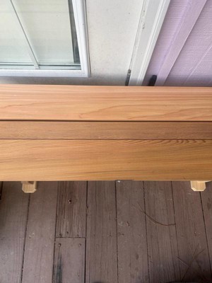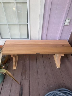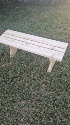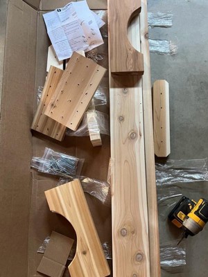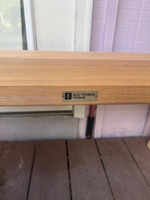 [This review was collected as part of a promotion.] Solid, durable and simple bench that’s easy to assemble and comfortably seats two. Would be better if it came with a protective transparent stain for the cedar wood.