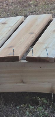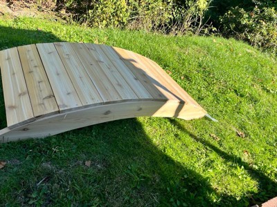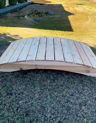 [This review was collected as part of a promotion.] Absolutely beautiful cedar Bridge. It's super easy to put together. Hubby had it up in 10 mins. Absolutely love that it's cedar because it weather's well and it's sturdy. Will go beautifully when we get our water features put in! I can't wait!!!!