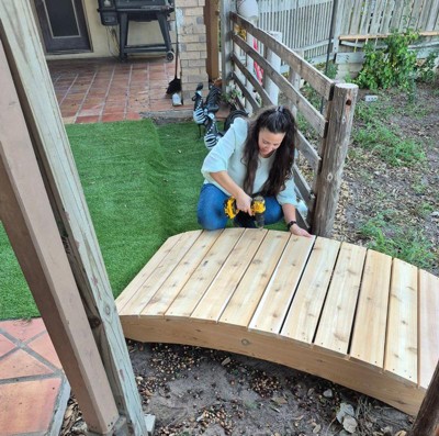 [This review was collected as part of a promotion.] This wooden bridge will be a stunning addition to our yard, combining elegance with high-quality craftsmanship. Assembly was a breeze, taking only about 35 minutes to complete. It feels incredibly sturdy and durable, and the size is perfect for the space we have planned for this spring! I highly recommend it to anyone looking to elevate their outdoor decor!