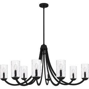 The Allard chandelier is a stunning centerpiece that commands attention. Clear water glass shades add a touch of sophistication and allow the light to shine through brilliantly. Choose from two sizes of chandelier in either matte black or brushed nickel to create a dramatic focal point in any traditional interior setting. Allard's oversized design makes it a great choice for any large dining room or living room space.