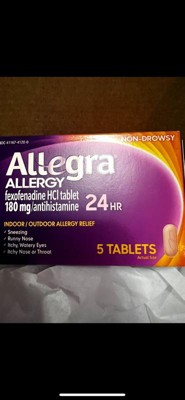 - INCLUDES: One (1) 5-count pack of Allegra Adult 24-Hour Allergy Relief Tablets, Non-Drowsy Allergy Medicine