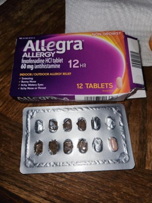 [This review was collected as part of a promotion.] The Allegra allergy 12 hrs has become my new favorite Allergy medication. It's a little pricey compared to what I was taking but I wouldn't trade these in for nothing. The packaging is an eye grabber with the purple and orange. There's no smell to them and the texture is just normal for a tablet.