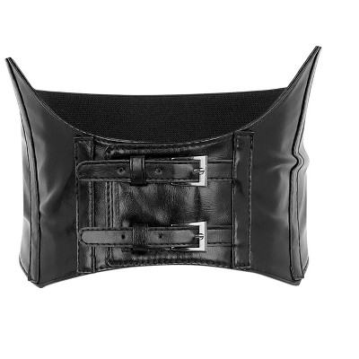 Allegra K Women Press Button Closure Stretch Corset Waist Lace Up Cinch Belt Band Black