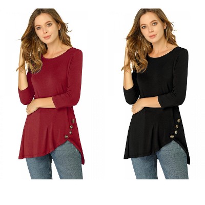 Allegra K Women's 3/4 Sleeve Round Neck Button Decor Casual Stretchy Tunic Tops - 2 of 4Allegra K Women's 3/4 Sleeve Round Neck Button Decor Casual Stretchy Tunic Tops - 3 of 4Allegra K Women's 3/4 Sleeve Round Neck Button Decor Casual Stretchy Tunic Tops - 4 of 4