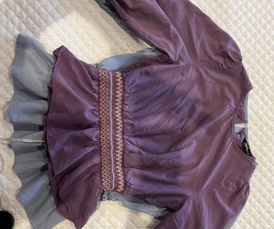 I love this blouse! The dusty purple color is gorgeous, and I received many compliments when I wore it. However, be sure to follow the care instructions carefully! Unfortunately, I didn’t and accidentally machine dried it on a cool setting, which caused it to shrink by 3 inches in length. I’m so disappointed since I had only worn it once. I bought two blouses and included a photo of the shrunken purple blouse placed on top of the unwashed blue one for comparison.