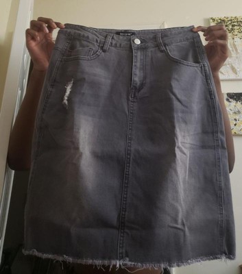 INSPIRE CHIC Women's Basic Distressed High Waist Ripped Hem Washed Jeans Skirt - 2 of 4INSPIRE CHIC Women's Basic Distressed High Waist Ripped Hem Washed Jeans Skirt - 3 of 4INSPIRE CHIC Women's Basic Distressed High Waist Ripped Hem Washed Jeans Skirt - 4 of 4