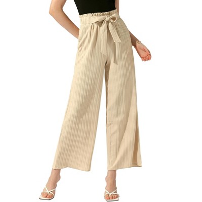 Flowy wide-leg pants with an elastic waist cinched by an attached tie belt make these pants more distinctive and attention-grabbing. The relaxed fit and butterfly hem make them a great choice for spring and summer closets. The flared-leg trousers have oversized ruffles and an elastic waist for easy movement. In these sultry yet comfortable wide-leg pants, catch the breeze and plenty of double-takes.