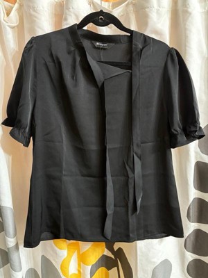 bow tie neck tops elegant office short sleeve blouse| US Size | Chest Girth | Waist Girth | Shoulder Width | Total Length |