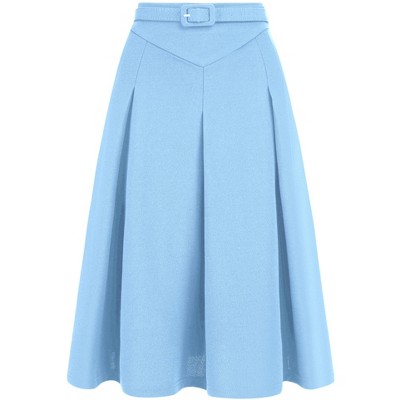 INSPIRE CHIC Women's Button Decor Work A-Line Formal Knee Length Skirt Large Blue