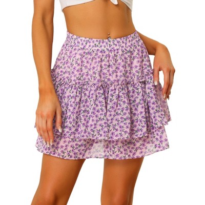 INSPIRE CHIC Women's Casual High Waist Back Slit Short Denim Skirts Medium Light Purple
