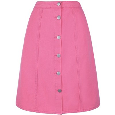 INSPIRE CHIC Women's Casual High Waist Back Slit Short Denim Skirts Small Pink