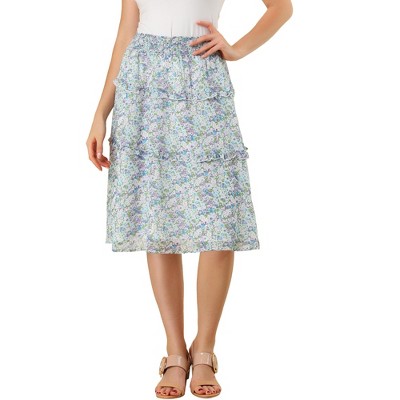 INSPIRE CHIC Women's Chiffon Elastic Waist Ruffle Tiered Flowy Midi Floral Printed Skirts - 1 of 4