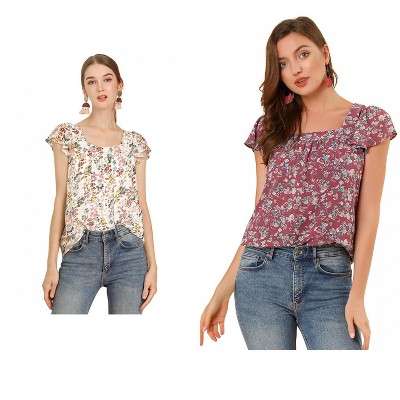 Allegra K Women's Chiffon Semi Sheer Keyhole Neck Elegant Work Blouse 2 Packs