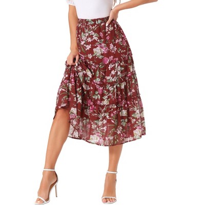 This chic, A-line midi skirt has a natural waist fit and a flared hem shaped by chiffon fabric. Hidden side zipper and pocket. Pair it with the matching top for a complete look. Easily teamed with a tucked-in blouse and high heels for a polished look. Gauzy woven fabric is dressed up with abstract white floral prints, shaping this whimsical skirt that falls from a natural waist into a twirly midi skirt, creating a flattering, tailored fit.