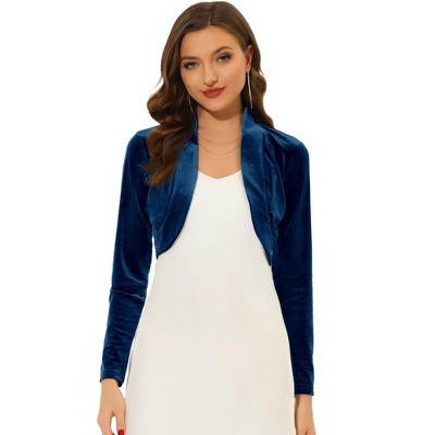 Made out of good quality and stretchy velvet. Elegant chic dress shrug for women, perfectly pair it with dress. It can even be a wedding bolero. The cute crop bolero shrug is a pretty layering accessory. It is great for daily wear, prom, homecoming, parties, and bridesmaids. These long-sleeve shrugs are great if you have a sleeveless dress or a cute sleeveless shirt.