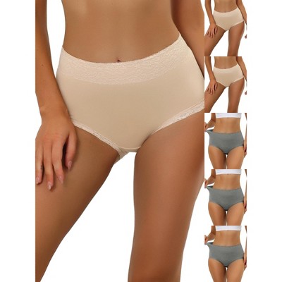 Allegra K Women's Cotton High-Rise Lace Trim Tummy Control 5 Packs Full Coverage Briefs Gray/Beige/Purple Large