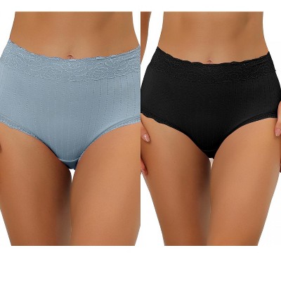 Allegra K Women's Cotton High-Rise Lace Trim Tummy Control Full Coverage Brief 2 Packs
