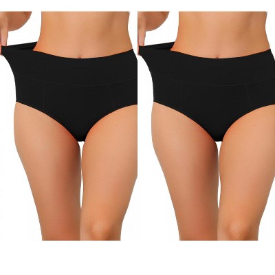 Allegra K Women's Cotton High-Rise Lace Trim Tummy Control Full Coverage Brief 2 Packs