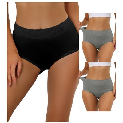 Allegra K Women's Cotton High-Waisted Lace Trim Tummy Control Full Coverage Briefs 3 Packs