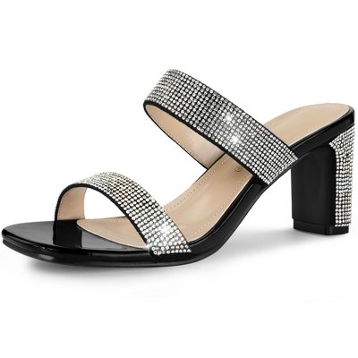 Allegra K Women's Crisscross Strap Rhinestone Block Heel Slide Sandals - 1 of 4