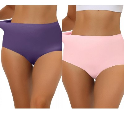 Allegra K Women's Elastic High-Waisted Unlined Fullcover Breathable No-Show Hipster Underwear Dark Purple Medium