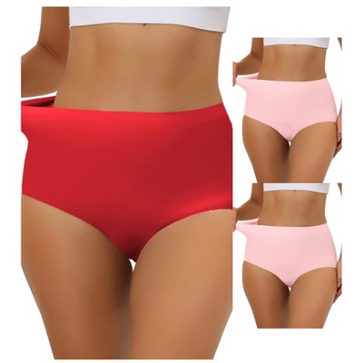 Allegra K Women's Elastic High-Waisted Unlined Breathable No-Show Hipster Underwear Multicolored 2 Beige 1 Bright Red Large