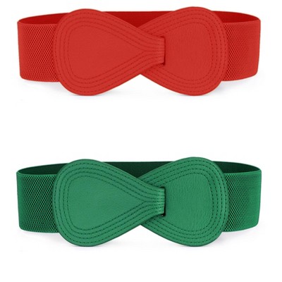 Allegra K Women's Elastic Waist Belt Interlock 8-shaped Faux Leather Buckle Belts 2 Pcs Green & Red 85cm/33.5"