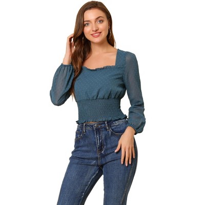 • Lace Panel, Sheer Sleeve Blouse, Cami Top is Not Included