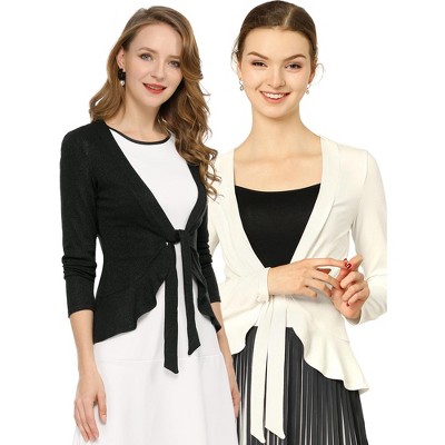 Allegra K Women's Elegant Long Sleeve Knit Open Front Crop Bolero Shrug 2 Packs Black/White Small