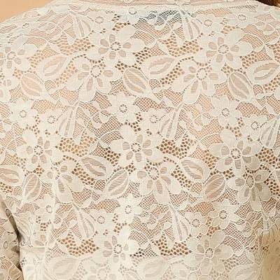 It's designed with floral lace and an open front for a comfortable fit. Crafted from soft and knit fabric, this lace cardigan features feminine full sleeves, a scalloped hem, and is perfectly covered up with sleeveless dresses for a wedding look. A must-have item in your clothing wardrobe, the lace bolero has long sleeves, semi-sheer lace, and is finished with a cropped length and could be a bit stretchy.
