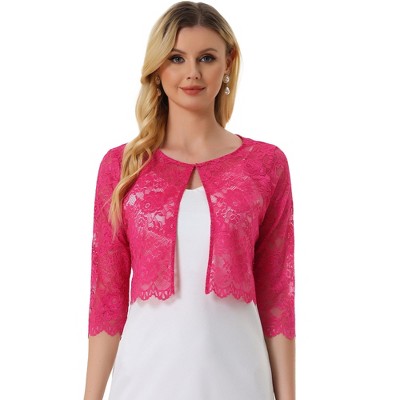 Add understated details to your formal attire with this shrug. This shrug is the perfect complement to an everyday skirt for weekend casual looks. Team it with your favorite skirt and heels for an effortlessly chic look. Add a touch of femininity to your look with a sheer floral lace shrug top. It features cap sleeves, a placket, and sheer floral lace. A flattering lace hem and beautiful floral prints add pretty detail to this women's top, which is perfect for weekday meetings or an evening out.
