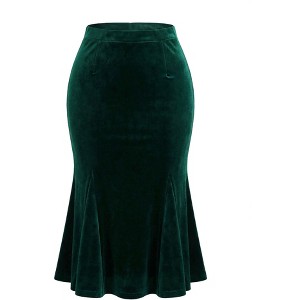 Allegra K Women's Feminine Retro Bodycon High Waist Velvet Fishtail Skirt Green X-Large