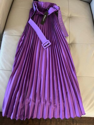 Allegra K Elastic High Waist Flowy Pleated Skirt for Women's with Belt Swing A-line Work Maxi Skirt. Elastic High Waist, Flowy, Pleated, With Belt, Maxi Length, Regular Fit. Flared Pleated Material with lined, classic swing a line skirt, not see-through, cute, and flattering. Its belt has a timeless charm and shows your figure. Pair with the sandals and clutch for an elegant or casual look. This skirt is perfect for various occasions such as office, work, weddings, business meetings, banquets, and cocktail parties. The fabric is composed of 95% Polyester and 5% Spandex, making it comfortable and stretchy. It is machine washable with like colors. The skirt's design includes an elastic high waist, flowy silhouette, and a belt that adds a touch of elegance. The maxi length makes it suitable for both casual and formal settings. Whether you're going for a casual day out or a formal event, this skirt will keep you looking stylish and elegant. The regular fit ensures comfort and ease of movement. The pleated design adds a classic touch, making it a versatile piece in your wardrobe.