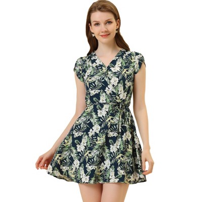 Allegra K Women's Flutter Sleeve Elastic Waist Swing Ruffle Hem Floral Dress