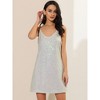 Allegra K Women's Glitter Sequin Spaghetti Strap V Neck Party Cocktail Sparkly Mini Dress - 1 of 4
