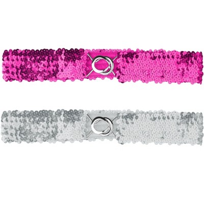 Allegra K Women's Halloween Wide Waist Belts Interlock Buckles Sequins Decor Stretchy Belts 2Pcs 60cm/23.62" Carnation