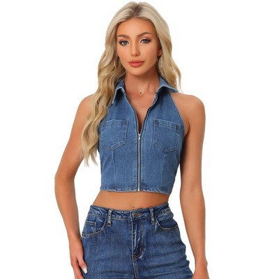 INSPIRE CHIC Women's Halter Neck Velvet Basic Layering Party Sleeveless Crop Top