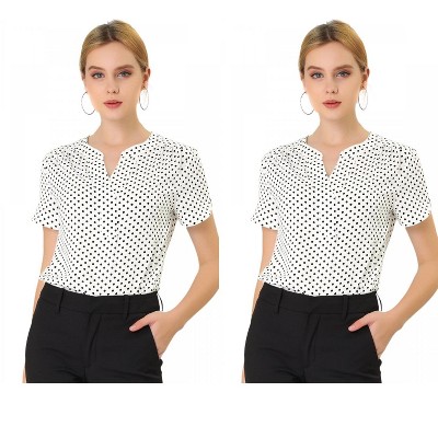 Allegra K Women's Hawaiian Floral Leaves Printed Short Sleeve Button Down Vintage Shirt 2 Pcs 2 Packs White Medium