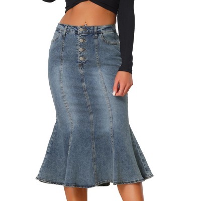 • Denim fabric graces this casual skirt that features a high waist and flared pleated design