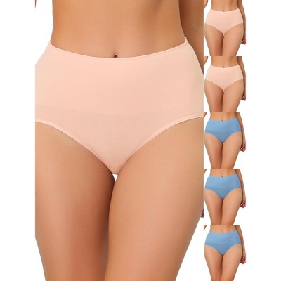 Allegra K Women's High Waist Shaping Breathable Tummy Control Briefs 5 Packs Pink/Beige Large