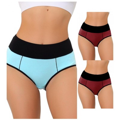 Allegra K Women's High Waist Tummy Control Color-Block Available in Plus Size Briefs 3 Packs 3 Light Blue Large