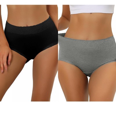 Allegra K Women's High Waist Tummy Control Comfortable Lace Trim Ribbed Brief 2 Packs 1 White 1 Black Medium