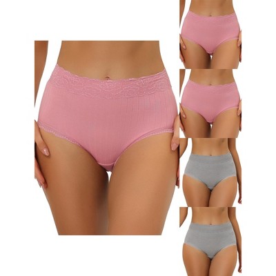 Allegra K Women's High Waist Tummy Control Comfortable Lace Trim Ribbed Briefs Beige Pink Medium