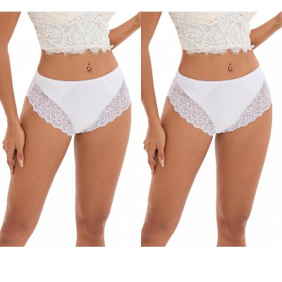 Allegra K Women's High Waist Tummy Control Comfortable Lace Trim Ribbed Briefs White Small 2 White X-Large