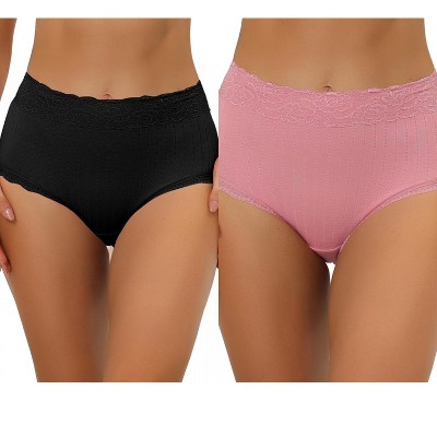 Allegra K Women's High Waist Tummy Control Stretch T-back Breathable Comfortable Thongs 2 Packs 1 Black 1 Pink X-Large